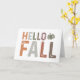 Ce design sur le thème de l'automne accueille chaleureusement la saison automnale avec la phrase "Hello Fall". Les mots sont disposés dans une mise en page simple mais visuellement attrayante, avec "Hello" placé au-dessus de "Fall". Chaque lettre de la phrase est présentée dans une police en gras et en bloc avec une texture légèrement dégradée, lui donnant un aspect rustique et patiné qui complète le thème automnal.
