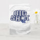 Big Shot Soccer Ball est conçu avec un style collégial courbant lettrage avec le O dans "shot" comme un ballon de football bleu et blanc peint, futball, ou football. Idéal pour les amateurs de sports de tous âges.