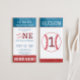 Invitation de baseball 1er anniversaire - Un nouveau-né de l'année pour votre enfant d'un an. Dimensionné à 4x8 comme un invitation de style billet en vintage rouge et bleu maillot. Idéal thème de premier anniversaire pour votre petite salope. Comprend une conception de dos personnalisée.