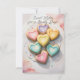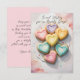Voici notre charmante carte de vœux plate personnalisable, parfaite pour envoyer des messages sincères à vos proches. Le recto de la carte présente un design charmant avec sept biscuits en forme de cœur magnifiquement décorés de couleurs pastel, disposés selon un motif visuellement agréable. Chaque biscuit est orné de détails en glaçage complexes, ajoutant une touche d'élégance et de douceur à la carte. Le texte sur le recto indique "Sweet Wishes for a Lovely Day !" (Jolis vœux pour une journée merveilleuse) dans une police élégante de style manuscrit, complétant parfaitement le design fantaisiste.