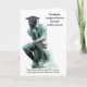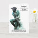 Carte de graduation personnalisable avec le penseur, grâce à PublicDomainPictures.net. Front dit : "Diplômé, félicitations pour votre réussite!" et "Maintenant que vous avez votre B.S., vous êtes bien préparé pour le monde des affaires." À l'intérieur du penseur a un casquette et une mallette et le texte est : "Sortez et mettez votre B.S. à bon usage!" Vous pouvez modifier le texte, les polices, les couleurs des polices et la couleur arrière - plan.