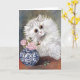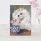 Une carte de voeux vierge avec le tableau de l'artiste britannique Louis Wain (1860-1939), White Cat. Un joli portrait d'un chat perse blanc à côté d'un vase en porcelaine bleu et blanc aux roses roses. Wain était connu pour ses illustrations de chats aux yeux larges.