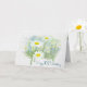 Close up of white daisies in country meadow with watercolor frame for 105th birthday.