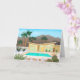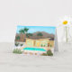 Dotée d'une charmante représentation d'une maison moderne jaune du milieu du siècle avec un décor de jardin tiki, cette carte de voeux présente des lignes épurées, des formes géométriques audacieuses et des couleurs vives qui incarnent l'esthétique emblématique du milieu du siècle. Parfait pour ajouter une touche de sophistication vintage et de l'atmosphère désertique de Palm Springs à votre correspondance.