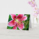 Photo originale d'un Stargazer Lily aux tons roses foncés, les détails de la fleur unique en vue. Photo avec effets spéciaux pour mettre en évidence un style graphique. La carte est vide à l'intérieur, vous pouvez ajouter du texte comme vous le souhaitez ou laisser vide pour écrire personnellement vos propres notes !