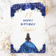Carte Bleu foncé princesse Floral Joyeux anniversaire