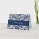 Carte de faire-part de mariage de fugue avec le motif floral classique et élégant de damassé dans le bleu marine foncé et la crème outre de blanc, d'unique et d'élégant, de personnalisable avec vos noms et date de mariage, la manière parfaite de dire vos amis et famille que vous vous êtes enfuis pour se marier.