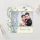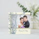 Invitation de cérémonie de renouvellement de voeu de mariage de photo dans bleu élégant et le beige avec le motif sensible de fleurs d'arbre fleurissant. Personnalisable avec vos détails de cérémonie et votre propre photo.