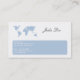 Conception de carte de visite avec une carte bleue du monde sur en haut à gauche le coin. Les données personnelles de contact sont dans une forme rectangulaire au-dessous de elles. Votre nom sera imprimé sur le coin haut droit dans le style noir de manuscrit.