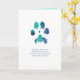 Empreinte de patte turquoise et bleue avec un cœur au centre et « Puissiez-vous trouver plus de force à chaque lever de soleil, et plus de paix à chaque coucher de soleil » en dessous en bleu.
