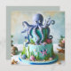 POUR L'ENFANT QUI AIME LA VIE MARINE - UN GÂTEAU DE COUCHE ANNIVERSAIRE DE ENFANT BLEUE OCTOPUS SUR LE DEVANT DE LA CARTE. COPIE COMPLÈTEMENT MODIFIABLE SUR LE DOS.