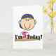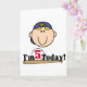 T-shirts, tasses, magnets, cartes, autocollants, sacs fourre-tout, etc. de baseball 5e anniversaire avec un garçon blond, un casquette bleu, un baseball, une batte et un texte qui dit : "Je suis 5 aujourd'hui !".