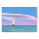 Carte de voeux avec mon design numérique original d'un voilier sur une eau turquoise tranquille avec des nuages ondulés sur un ciel bleu et un horizon rose.