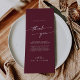 Cette carte de place boho chic bordeaux vous remercient est parfaite pour un mariage minimaliste. Le vin de marron foncé rouge design bohème moderne dispose de calligraphie rustique simple avec un style unique mais classique. Personnalisez votre carte de table de réception avec vos noms et une note attentive pour vos invités, votre famille et vos amis.