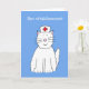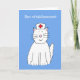 Un grand chat blanc et moelleux avec un casquette d'infirmières sur, dressé contre un arrière - plan bleu et les mots "Bon rétablissement" (carte de bien-être en français) accompagnant l'image.