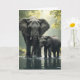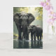 Célébrez la journée spéciale de votre mère avec une carte de jour pour maman avec un bébé éléphant et mère dans la forêt tropicale africaine debout près d'un étang ensemble. Cette scène émouvante saisit la beauté de la nature et le lien entre la mère et l'enfant, ce qui en fait un hommage parfait à votre propre relation chère. Faites-lui savoir ce qu'elle veut dire pour vous avec cette carte attachante. Ajoutez à votre collection une touche d'élégance naturelle.