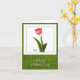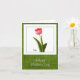 Joyeuse fête des mères - One Pink Tulip : Un closeup floral, photo nature d'une tulipe rose isolée contre un arrière - plan blanc et un cadre numérique. La photo est au-dessus d'un arrière - plan de chenille vert avec la légende de 'Tulip'. Les mots "Bonne fête des mères" écrits sur le devant et à l'intérieur. Vous pouvez modifier le texte à l'avant et ajouter votre message à l'intérieur avec le modèle facile.