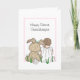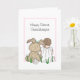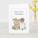 Une petite fille dessinée à la main, assise à côté d'un gros lapin farci. Cette carte dit petite-fille mais vous pouvez personnaliser le texte avec un nom ou un membre de famille différent.