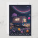 Carte de voeux Whimsical pour les amateurs de livre caractéristiques AI généré rêve d'art numérique avec un bookmobile illuminé dans un champ de fleurs sous un ciel nocturne. "Rencontrez-moi sous les étoiles et nous pouvons lire tous nos livres interdits préférés ensemble" le texte peut être customisé à votre propre message spécial