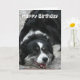 Une carte d'anniversaire joyeuse d'amoureux des chiens avec un joyeux jeune chien de mouton de Border Collie. Le chien est un collier frontalier noir et blanc.