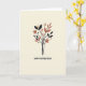 Designed with a serene, creamy beige background, this card centers a minimalist botanical illustration that feels quietly romantic ❤️. Slender dark stems rise upward like a gentle reach toward someone you care about, creating a calm, intimate focus. Along the stems, elongated black leaves mingle with warm terracotta-toned foliage, their alternating shapes suggesting an easy back-and-forth like close friends sharing a moment. Near the top, a single standout flower opens with rich black petals that curl inward as if cradling something precious. Inside the bloom, small golden stamen-like dots radiate softly, adding a tender glow that draws the eye. The overall look stays simple and refined, with smooth lines and muted contrasts that keep the scene warm rather than loud. Any wording would sit neatly around the central bouquet, with a short message in dark lettering near the top and a smaller line in a softer terracotta shade below 🌼. The flower’s black petals frame a cluster of tiny golden marks at the center against the creamy beige backdrop.
