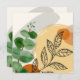 Design botanique avec des couleurs vertes, oranges et beiges et des éléments d'aquarelle.
