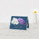 Beau bouquet avec glycine violette et bouquets de roses blanches contre un arrière - plan bleu. Le texte de salutation de couleur rose utilise une police de typographie de script attrayante. Les fleurs recouvrent l'avant de cette carte qui peut être utilisée comme carte de remerciements, carte d'anniversaire ou toute autre carte de votre choix. Personnalisez-le avec votre texte et/ou vos images pour en faire un unique !