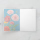 Fleurs carnatives rose et jaune féminin colorées dressées contre un arrière - plan bleu. A l'intérieur, quelques branches de fleurs sur un fond bleu sur la gauche de la carte. Impression de peinture à l'huile digitale florale chaude et audacieuse.