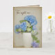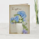 Fleurs d'hydrangée violette et bleue avec dentelle de la reine Anne dans un vase à la toiture texturée pour l'encouragement.