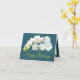 Magnifique bouquet de roses blanches, orchidées blanches et une pivoine blanche contre un arrière - plan vert aqua. Le texte en couleur jaune utilise une police de typographie de script attrayante. Les fleurs recouvrent l'avant de cette carte qui peut être utilisée comme carte de remerciements mariage, une carte d'anniversaire ou toute autre carte de votre choix. Personnalisez-le avec votre texte et/ou vos images pour en faire un unique !