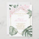 Le design est composé d'éléments tropicaux avec des feuilles de palmier vert aquarelle et de fleurs roses avec cadre géométrique or. Calligraphie ou écriture type avec l'illustration design en couleur or. Il s'agit d'une pièce de collection mixte et de correspondance. Idéal pour vos célébrations mariages !