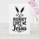 This card features a minimalist rabbit head centered near the top, outlined in black with long ears, fine whiskers, and a small heart-shaped nose that feels like a gentle nod from a close friend 🐰. Beneath it, stacked lines of text are arranged in a neat, centered layout, with the first words set in a sturdy sans‑serif style in solid black. The word “BUNNY” sits prominently in the middle and is filled with an abstract, spot-like texture that adds a cozy, affectionate touch, like a shared inside joke between two people 🐇. Below that, the final word appears in a flowing cursive-style lettering, with smooth curves that read like a soft, romantic sign-off. All elements stay in a high-contrast black-on-white palette, giving the rabbit and lettering plenty of breathing room. The generous white space around the design makes the bunny’s face feel like it’s leaning in, while the layered text below feels like a quiet conversation unfolding line by line. The top icon is small and centered, and the textured “BUNNY” stands out as the darkest, most patterned element against the plain white background.