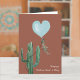 Illustration d'un ballon en forme de coeur bleu avec une corde enroulée autour d'un cactus sur un arrière - plan en terre cuite. Front dit, "Heureuse Sainte-Valentin." À l'intérieur dit "Je ne vous déserterai jamais" Tout le texte peut être customisé.