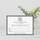 Coordonne avec le LOGO DE BOÎTE avec VOTRE INITIALE/MONOGRAMME Modèle de carte de visite noir et blanc par 1201AM. Un traitement de logo moderne et classique de votre initiale dans une boîte ouverte simple sur un modèle de certificat cadeau noir et blanc sophistiqué avec bordure. © 1201AM CREATIVE
