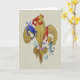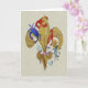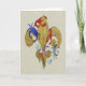 Carte de voeux Cajun fleur de lis à partir d'oeuvres d'art originales. Art amusant et fantaisiste des crabes, crevettes, langoustes et huîtres accrochés sur une fleur de lis dorée.