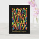 Carte d'anniversaire aux couleurs vives avec bougies et "Joyeux anniversaire" en gallois, d'un collage de papier peint à la main par Judy Adamson. L'intérieur est laissé vide pour votre propre message.