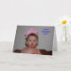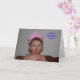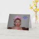 CAKE FACE FACE With a pink princess head band that's bright and colorful. That a surprised look on face. C'est une carte.