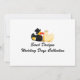 Mariés en canards en caoutchouc s'embrassant. Chapeau haut de forme et queue-de-pie avec diadème de fleurs. Jolie invitation ou carte de mariage qui peut être personnalisée avec votre propre texte, noms, date et images.