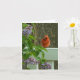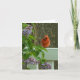Le cardinal rouge vif est assis à côté d'un buisson Lilac.
