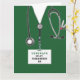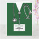 Carte de diplôme d'une école de soins infirmiers créative comportant des gommages d'hôpitaux verts uniques, un stéthoscope et un couteau suisse. Pour personnaliser modifier le texte pour ajouter le nom de l'infirmière.