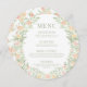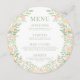 Laissez-vous tenter par l'élégance vibrante de notre carte de menu mariage ronde printemps-été bohème rustique. Décoré d'une couronne de délicate couronne de fleurs orange, il ajoute une touche parfaite pour rehausser votre expérience culinaire.