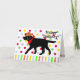 Design de dessin animé de Labrador Retriever, fantastique et original, créé par Naomi Ochiai, du Japon. De grands cadeaux amusants pour les amoureux de les chiens qui aiment Labradors. Un beau Black Labrador se promène avec son casquette préféré sur la tête. Vous pouvez customiser du texte et plus encore! Bandes colorées et motif pois avec ballons à l'intérieur pour Black Lab Cowboy, cowgirl Birthday Card design.