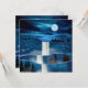 Scène paysagère Abstraite d'une cascade avec une lune, des oiseaux, le ciel nocturne et les étoiles.
