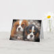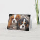 Deux Cavalier King Charles Spaniels regardent dans la caméra avec un regard solitaire et le message de "Missing One" sur celui-ci d'un genre manquant votre carte de voeux.