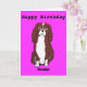 Ajouter le nom avant et le message à l'intérieur de la carte.Jolie carte d'anniversaire de chien espagnol. Plusieurs couleurs arrière - plans. Entièrement personnalisable.