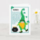 Une carte de voeux amusante pour votre neveu le jour de la Saint Patrick, avec un joli leprechaun dansant, tenant un shamrock, à côté d'une marmite d'or. Il y a une bordure vert foncé, doublée et la Prière celtique d'origine, en lettres vertes, à côté du leprechaun. Le leprechaun a un très grand casquette, dans un motif vert, une grande barbe de gingembre, un nez énorme, des manches rayées et des chaussettes et des chaussures noires avec des boucles pour assortir son bandeau. En haut, en lettres noires, est le mot 'NEPHEW' et le message intérieur est facile à customiser ou à supprimer.