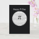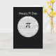 Cercle blanc avec bordure, a des chiffres aléatoires à l'intérieur avec un arrière - plan noir partout. Un symbole pi est placé au centre du cercle et au-dessus des nombres. Cette carte est parfaitement donnée sur Pi Day avec sophistication.