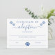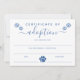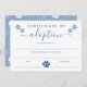 Certificat d'adoption de l'animal en blanc avec détails en bleu et bleu clair. Certificat bleu d'adoption imprimé avec de mignons empreintes de pattes avec peu de coeur. Certificat blanc et bleu d'adoption des animaux de compagnie avec polices et pattes mignonnes.