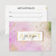 Des bons de cadeau modernes, watercolour, rose, vert, or. Éditez-le avec votre nom/vos données. Vous pouvez personnaliser la police de caractères ou la couleur avec plus de personnalisation.