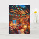 Nous vous souhaitons un Noël à l'ancienne et un Joyeux Nouvel An. le texte intérieur de la carte peut être personnalisé, afin que vous puissiez ajouter votre nom si vous le souhaitez ou modifier le salut. Cabine en bois chaleureux et douillet le soir de Noël plein de décorations de vacances, couronnes de vacances et lumières de Noël.